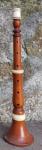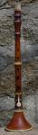 b7 Bombarde en Si bémol, à 2 clefs Bombarde en Si bémol (442hz)à deux clefs. Modèle d'inspiration personnelle, avec incrustations d'étain dans le haut et motifs carrés sur le haut du pavillon. Ses bagues sont en ivoire. |