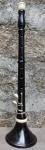 b18 Bombarde en Mi bémol Bombarde en Mi bémol réalisée en trois parties (pavillon + fût en deux parties), ornée de bagues en corne, ivoire ou os. Elle est unie de quatre clefs. |